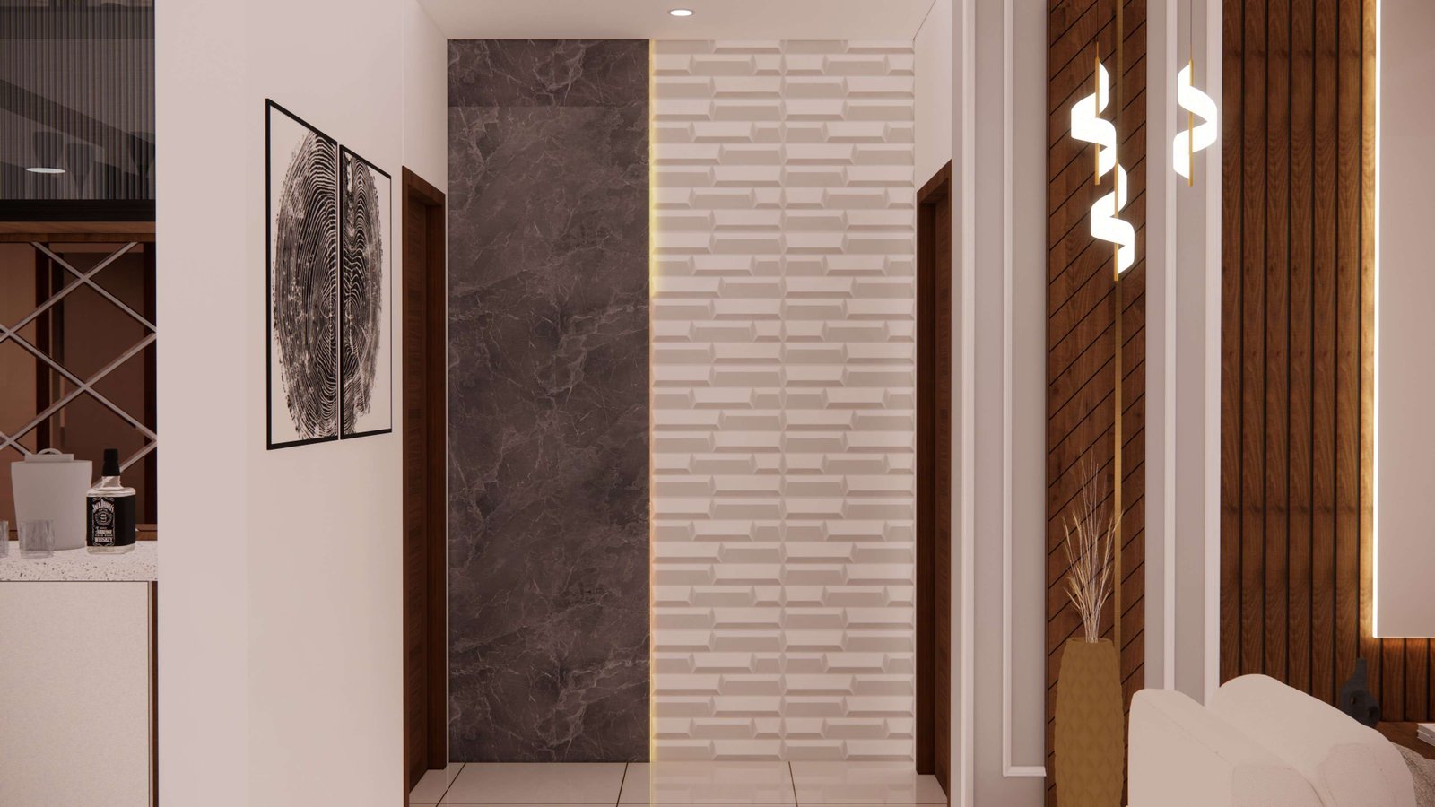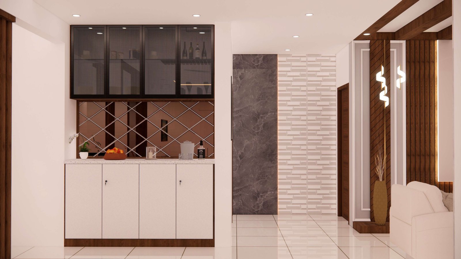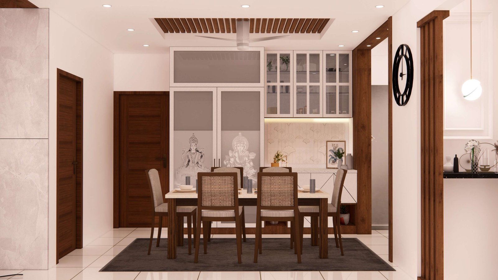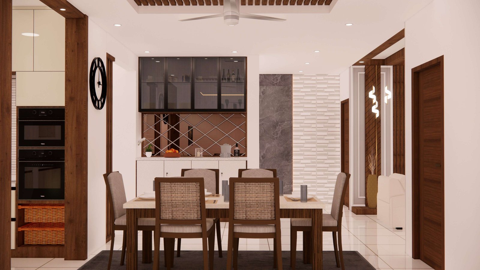 Every corner of this home has been thoughtfully designed, combining creativity with practicality. The Living Room Interior Design exudes a warm and welcoming vibe, featuring modern furniture, soothing colors, and ambient lighting that creates a perfect space for relaxation and entertainment. The Dining Room Interior Design complements the living area with elegant finishes and a refined aesthetic that brings the family together for every meal.