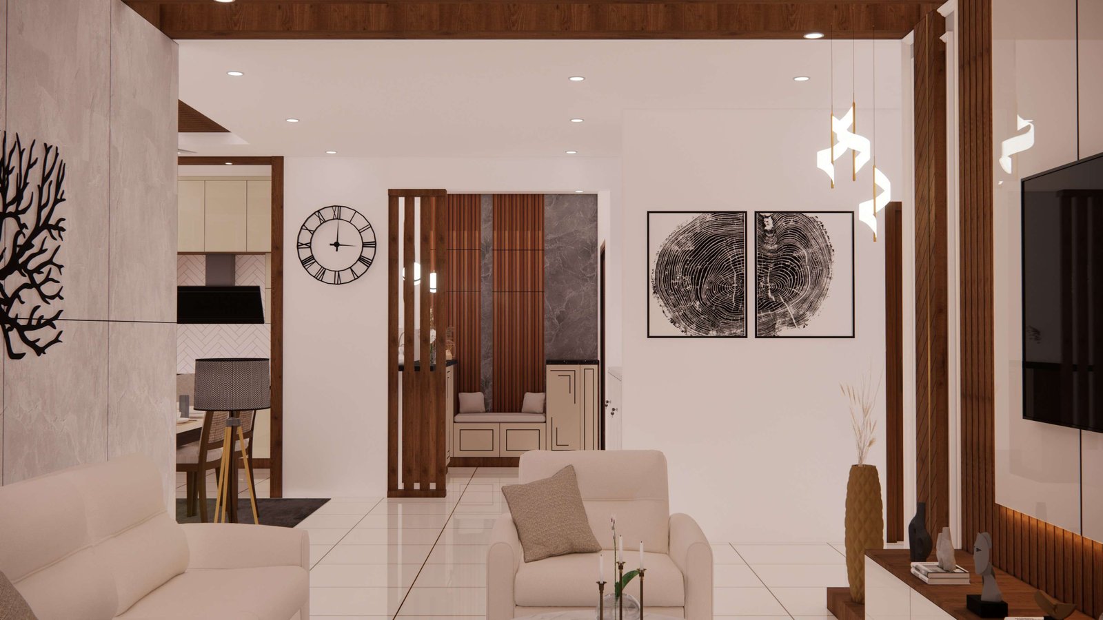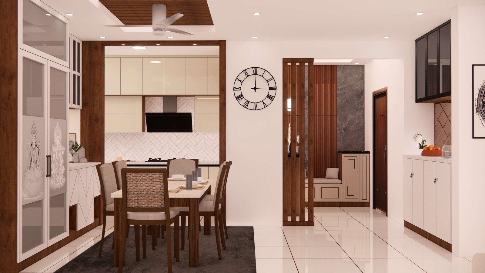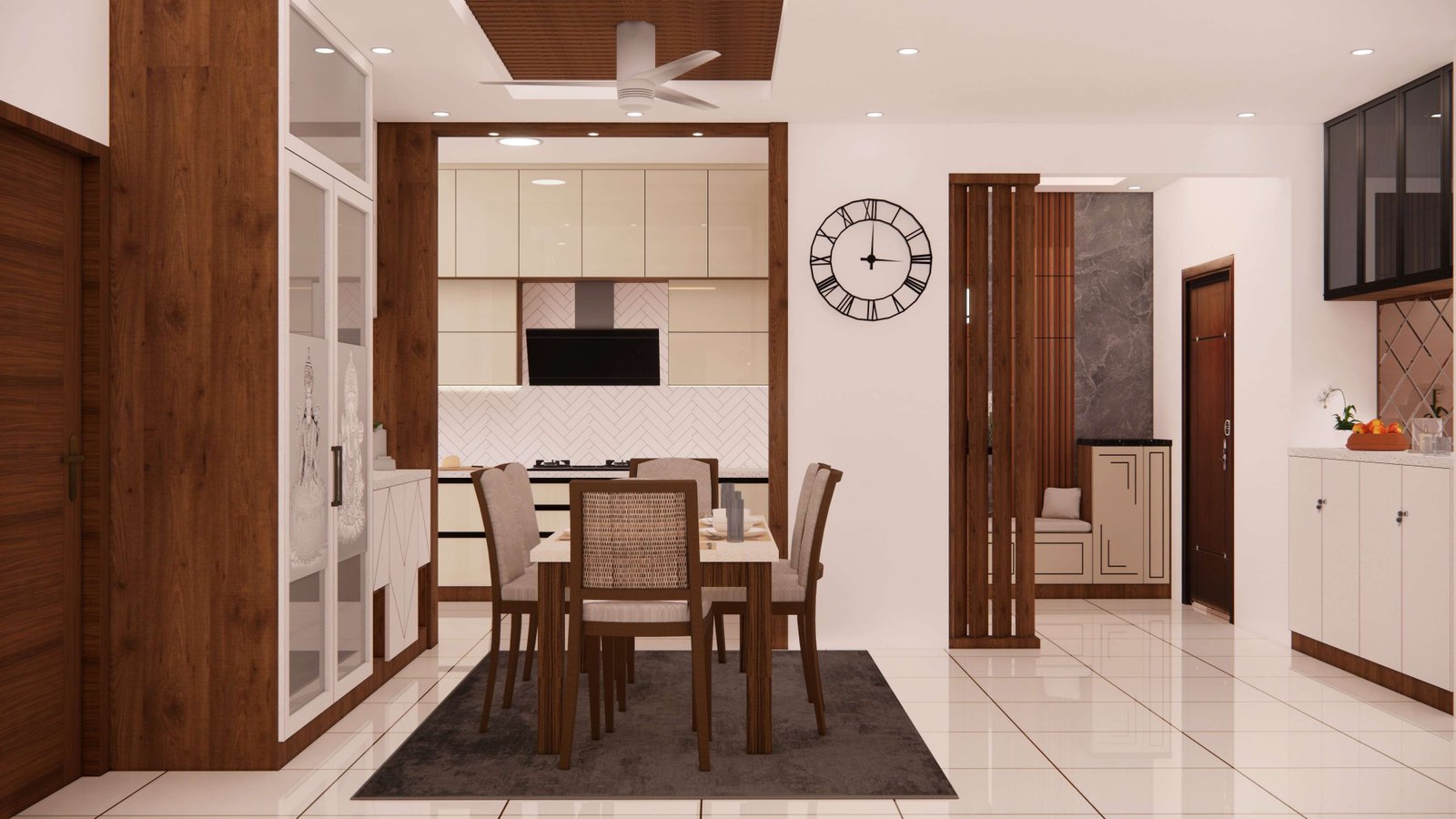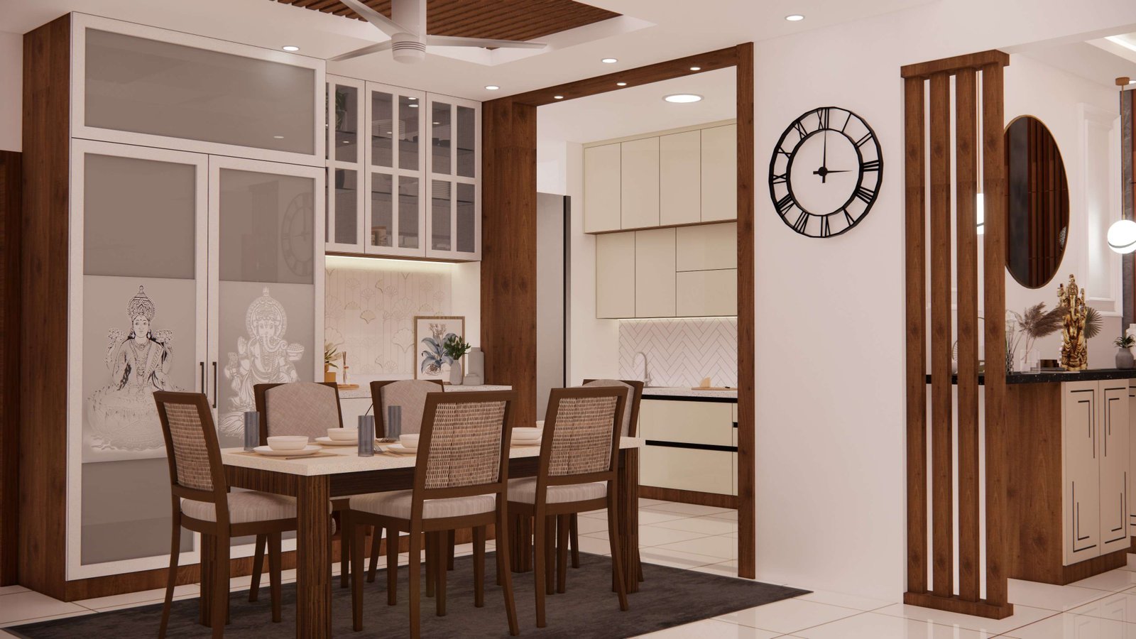 Every corner of this home has been thoughtfully designed, combining creativity with practicality. The Living Room Interior Design exudes a warm and welcoming vibe, featuring modern furniture, soothing colors, and ambient lighting that creates a perfect space for relaxation and entertainment. The Dining Room Interior Design complements the living area with elegant finishes and a refined aesthetic that brings the family together for every meal.