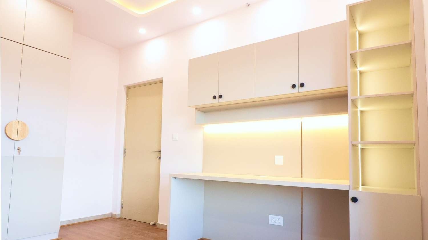 The 2BHK home at Krishvi Statura features a sleek modular kitchen, a cozy master bedroom with smart wardrobes, a stylish guest bedroom, and a warm, welcoming living–dining setup. High-quality materials, subtle color palettes, and modern lighting elevate the ambiance while maintaining durability and functionality. At Indigo Interiors, we believe every home should be a reflection of its owner’s personality. This project showcases our expertise in delivering affordable, premium-quality 2BHK interior design solutions in Bangalore—crafted with precision, creativity, and attention to detail. Whether you’re planning a makeover or a fresh interior setup, Indigo Interiors offers turnkey 2BHK interiors, modular kitchens, wardrobes, and customized furniture tailored to your needs. Give your 2BHK at Krishvi Statura or anywhere in Bangalore the transformation it deserves with Indigo Interiors where design meets comfort and craftsmanship.